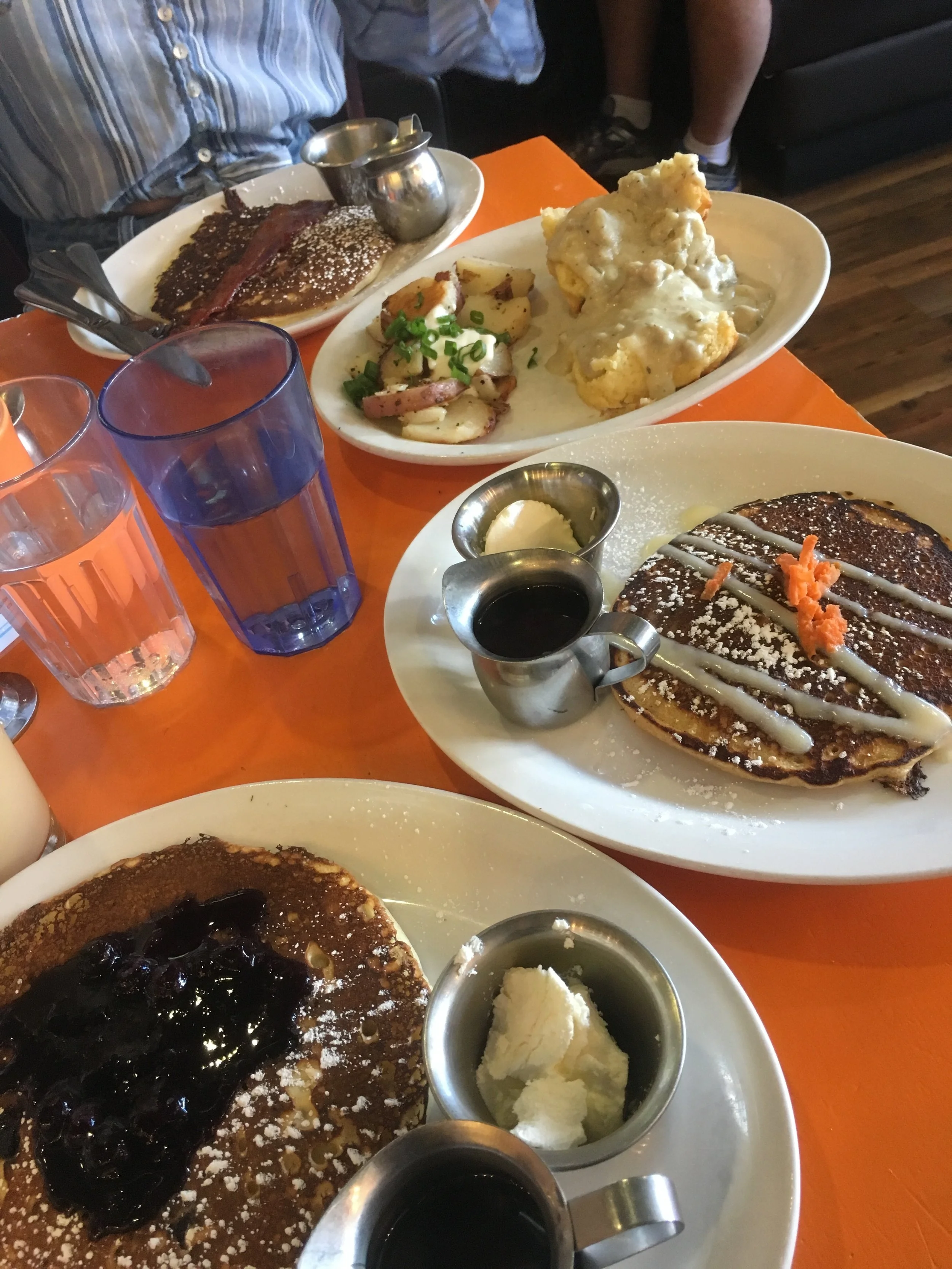 With pancakes ringing in at in at less than four bucks, I ordered two. The cake of the day was a carrot with cream cheese drizzle. Fantastic, but if you’re only going to order one I insist you order the lavender blueberry one. I’m pretty sure I was making audible mmmmm sounds as I ate this.
