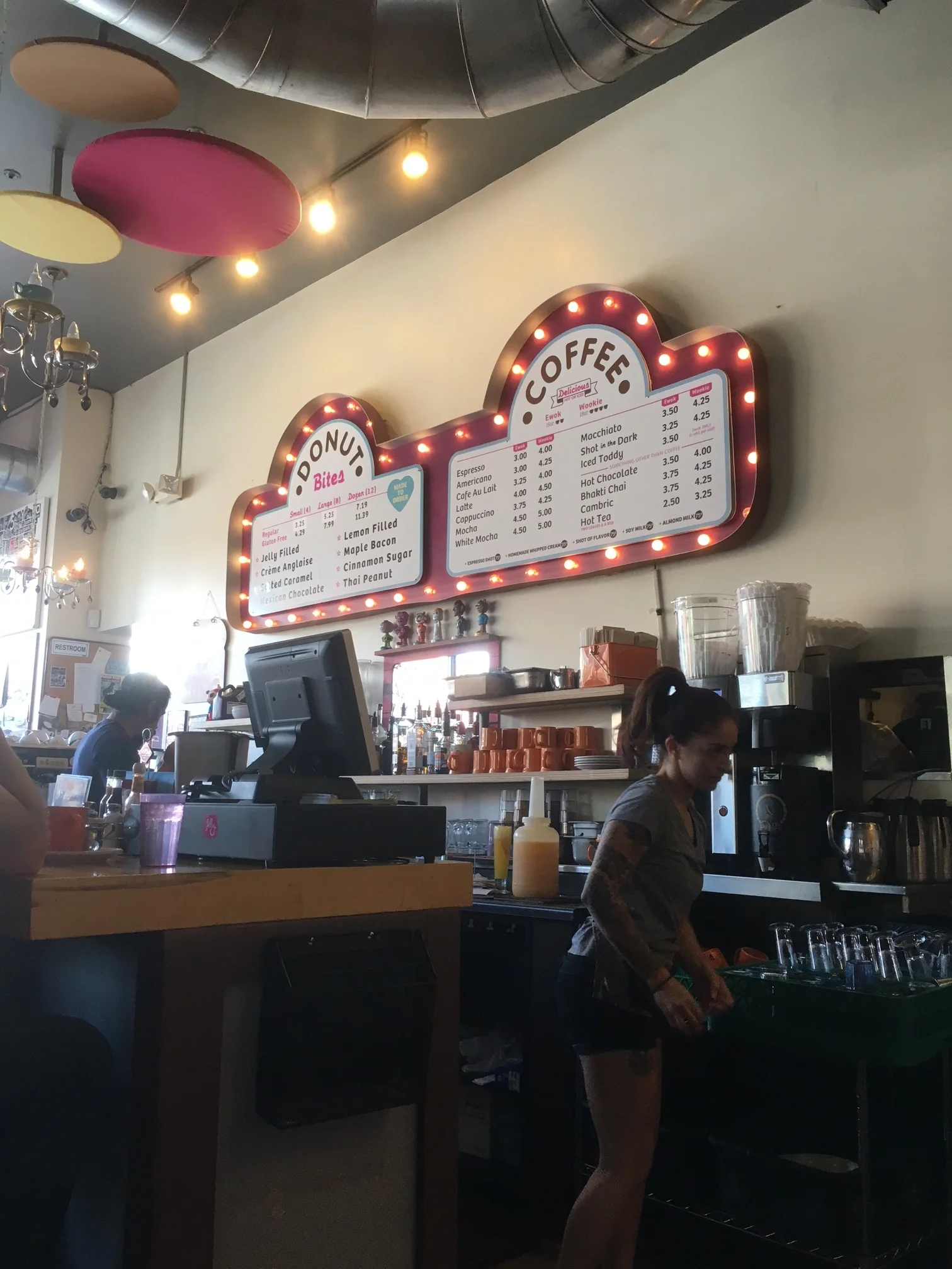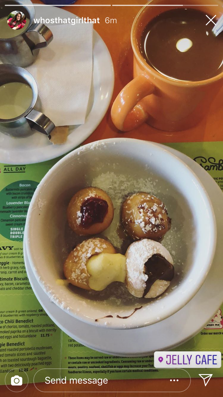 First up: Jelly Cafe, where the decorations are old cereal boxes and ordering mini donuts is a must.