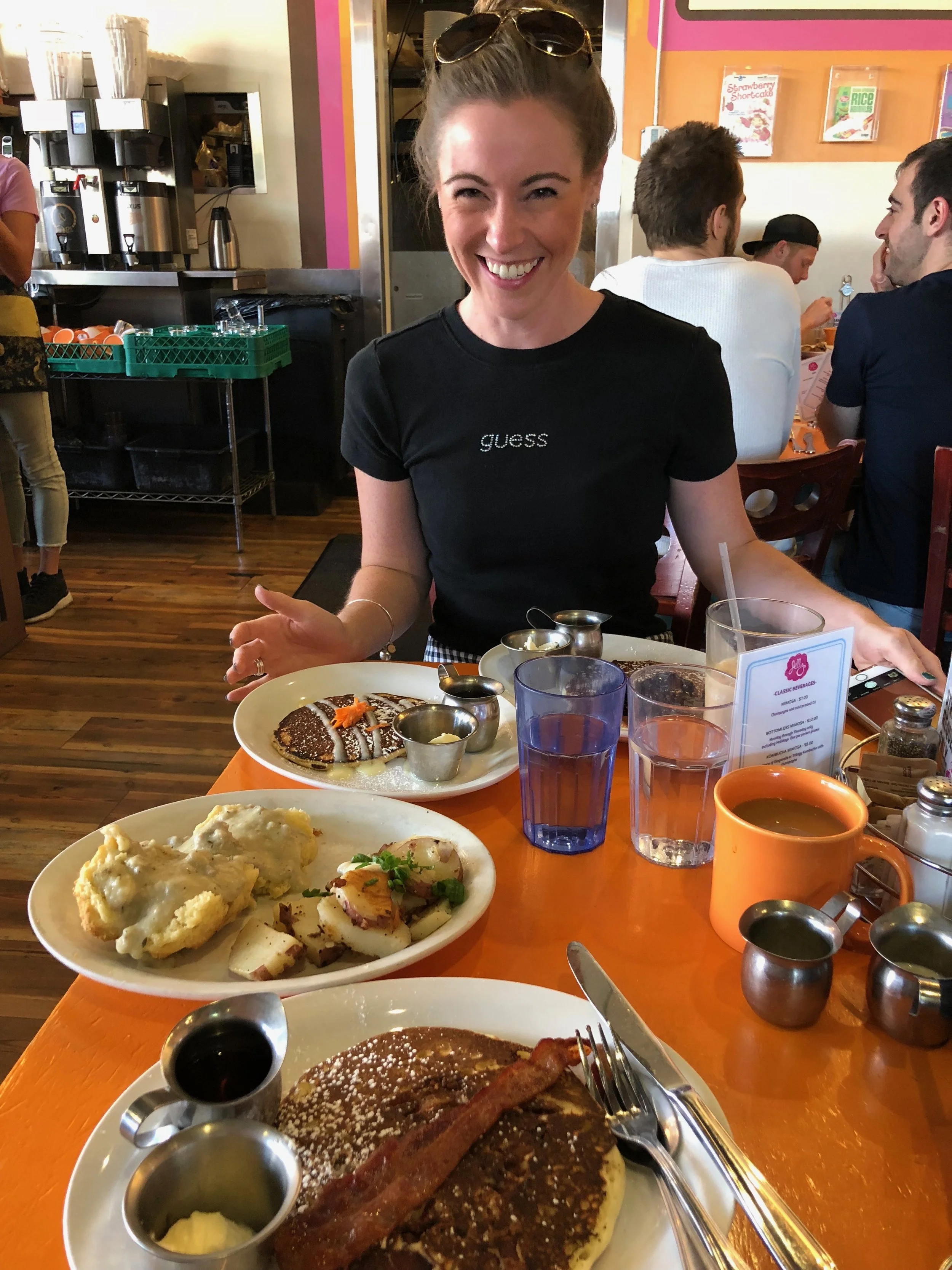 Sunday, we finally made it to Snooze and we weren’t disappointed. The vibe is a bit kitschy and bright, but the food and drinks were great. Thankfully our early morning yoga sesh and stair climb worked up an appetite because I devoured every last morsel of the Benny Goodman.